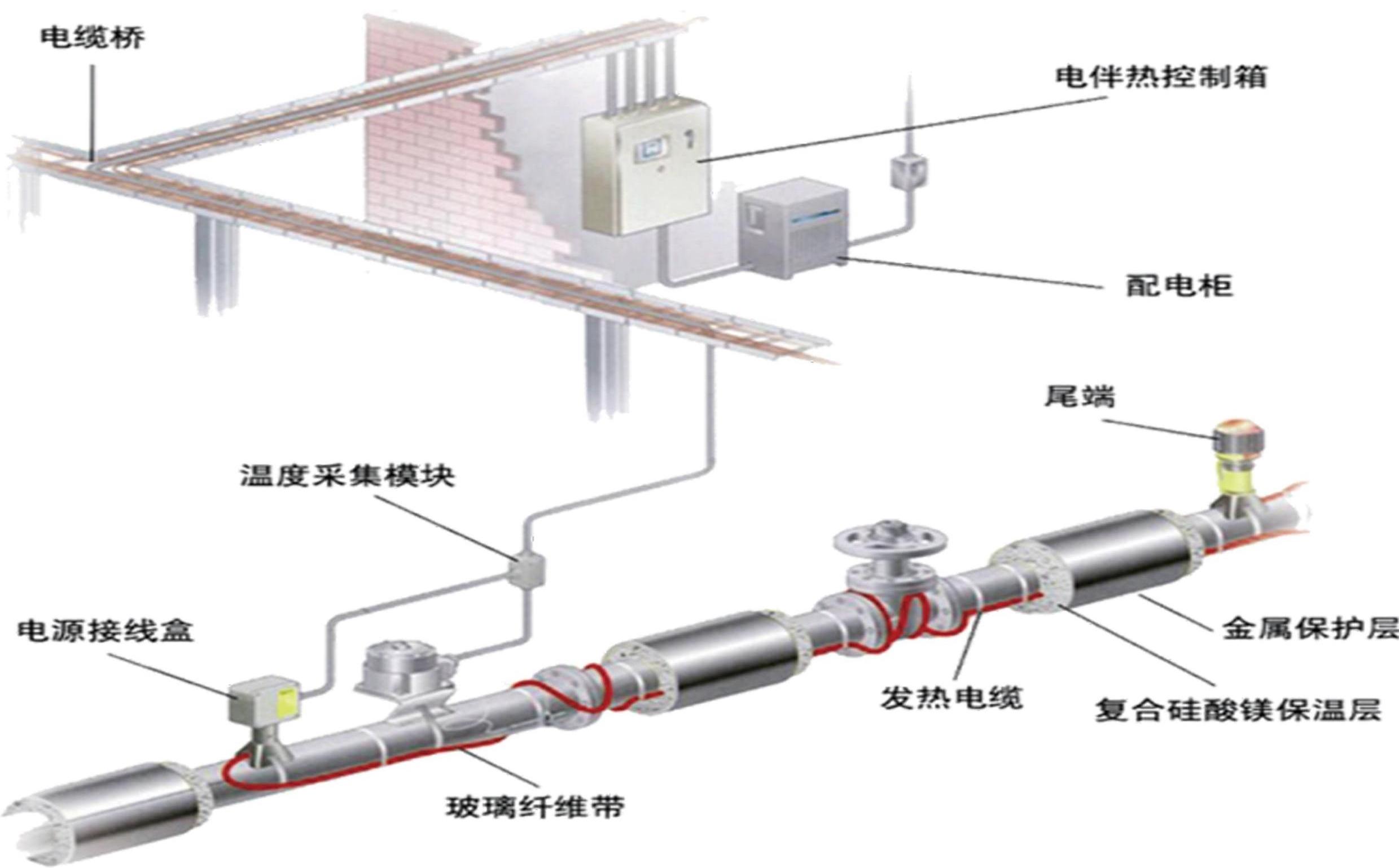 電伴熱溫控箱和發熱電纜是電伴熱系統的核心組成部分,該電伴熱系統具有